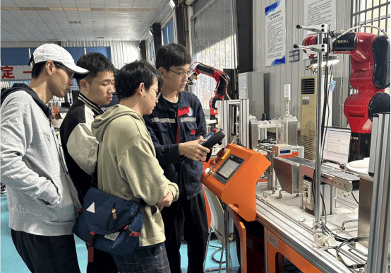 为期3天的培训中,陈淑玲、涂浩、华滨、刘琳琳、卢佳、曹光明等老师依托学校完善的硬件设备和自身过硬的专业技能,引导学员完成了桌面机器人、工业机器人、自动化设备及智能制造设备的综合实训,切实提高了学员的工业机器人编程调试、自动化设备编程调试能力。武汉工程大学机电工程学院带队教师曹鹏彬、左佩老师的对此表示充分认可,学员满意度达100%。机械工程学院机器人2101现代学徒制班的学生协助完成本次培训工作。