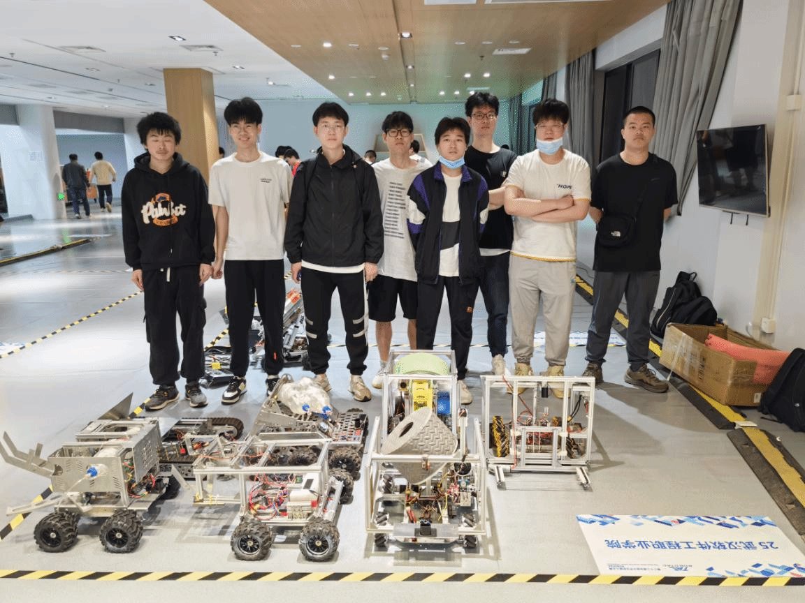比赛开始,五名指导老师、十名参赛队员携带八台重达20多斤的机器人奔赴赛场,仅是每天酒店到赛场的运输,就需要全体的努力。每次登上赛场,一名指导教师现场指挥,六名同学操作。调试、维护、整备、维修、加油,奔着同一个目标,大家分工明确,各司其职,为着胜利尽己所能。