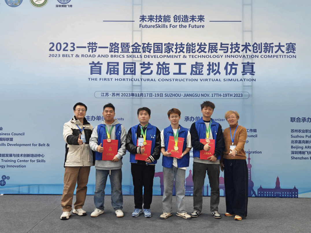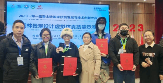 艺术与传媒学院组队参加三个赛项,在“首届园艺施工虚拟仿真”全国大赛中,侯永胜、王婷老师指导的赵子健、黄成杰团队荣获全国一等奖,是湖北地区高校参赛队伍获得的唯一一个一等奖,李诗恕、黄贝娜老师指导的解杨双、曹翱团队获三等奖。在“园林景观设计虚拟仿真”技能竞赛中,王婷老师指导的王湘萍、汪诗语团队和李慧娟、亓晓丹指导的吕添、冯昱然团队双双获得三等奖。在“花艺虚拟仿真”赛项中,张晓云、余刚、侯永胜、黄贝娜老师指导的舒瑶、文晓莉、张天怡、周庆菲2个团队均获得三等奖。