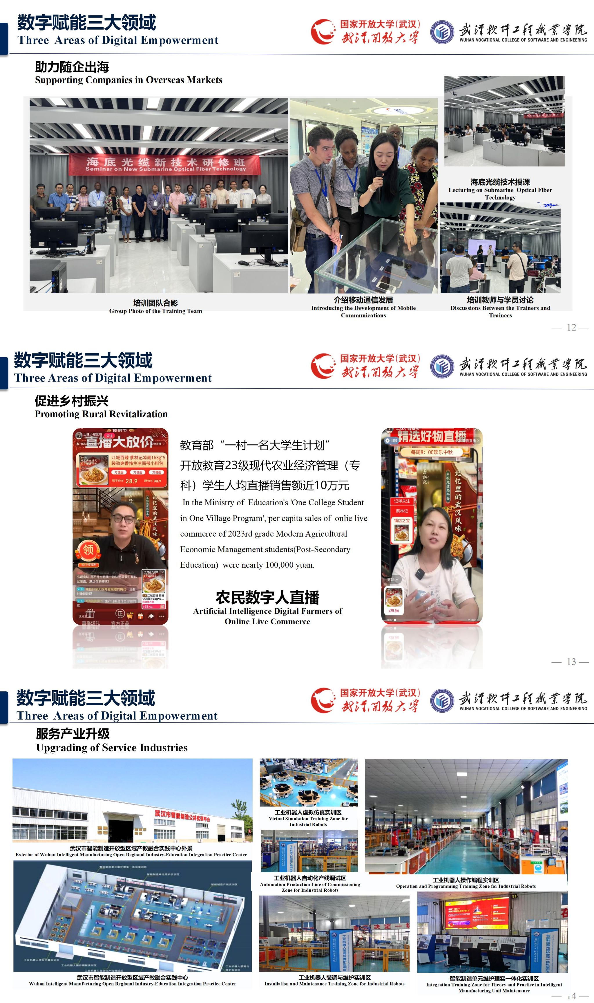 近年来,我校坚持立足两块教育,实现学历教育和非学历教育并重发展,数字技术和教育教学深度融合,依托“中国——南非国际市域政产教联合体” 和“武汉·中国光谷”产教联合体,加快“随企出海”脚步,不断提升人才培养质量和国际影响力,为区域经济发展和国际合作交流作出积极贡献。