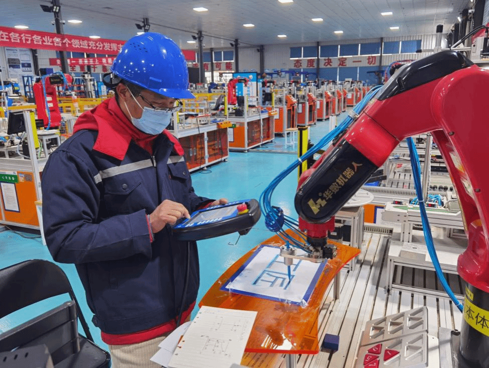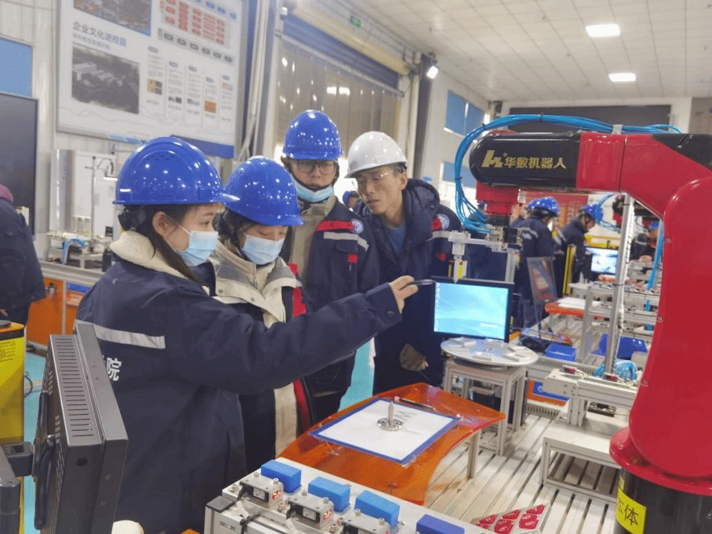 在1月13日至17日举行的第一期培训中,杨威、华滨和韩康三位“湖北省技术能手”围绕工业机器人示教编程、数字孪生虚拟仿真建模调试展开为老师们授课。在2月10日至14日举办的第二期培训中,老师们在反复实践操作中对一期培训内容巩固加深,并于2月14日接受了工业机器人操作和数字孪生虚拟仿真调试的实操考核,最终所有教师顺利通过。
