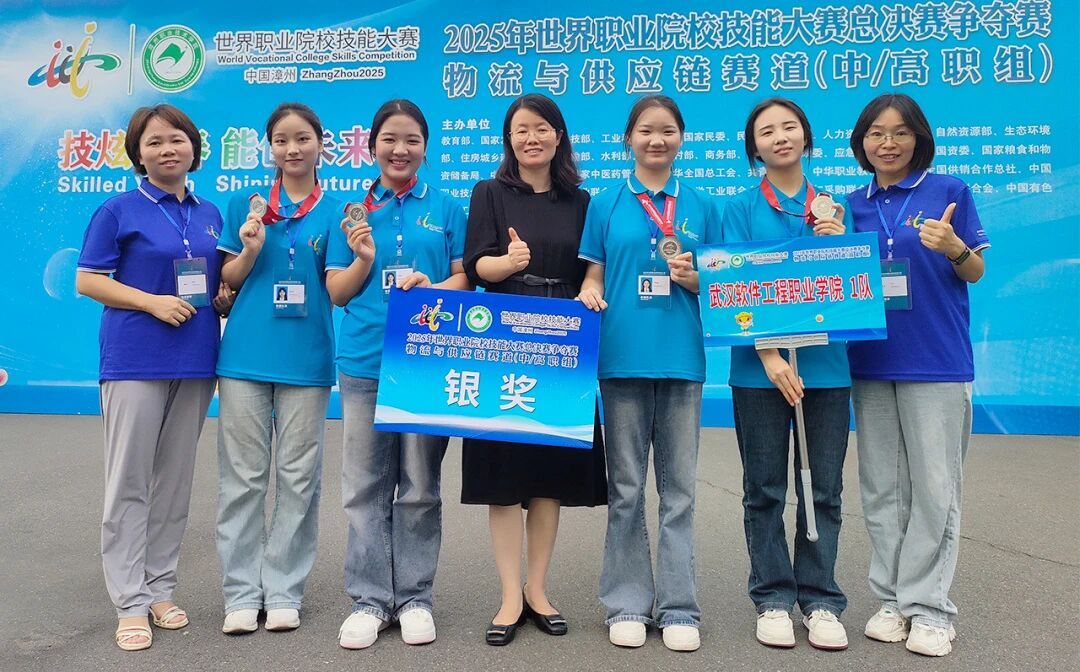 在物流与供应链赛道,商学院代表队传来捷报——商学院代表队由现代物流管理专业王宁、黄晶两位教师指导,向楚玉、周佩君、严斯琪、杨智敏四名同学组成,一举夺得银奖。这块奖牌的背后,是全校协同的 “育人合力”:机械工程学院、文化与旅游学院提供设备与技能支持,商学院实训室全力保障备赛环境,物流教研室主任温泉倾囊相授技术要点。更关键的是,学校与京东物流、顺丰速运、新宁物流等企业的深度合作,为备赛提供了行业前沿标准与真实物流场景。“从课堂理论到赛场实战,我们不仅学会了将知识转化为解决实际问题的能力,更真切体悟到职业教育服务产业发展的使命担当。” 获奖学生严斯琪表示,正是学校 “产教融合” 的育人模式,让他们在赛场上能够游刃有余。