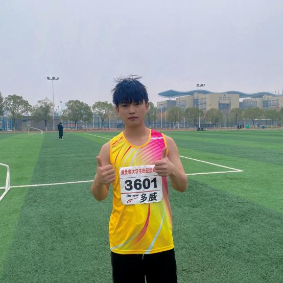 2021年12月10日—12日,在江汉大学举办的2021年湖北省普通高等学校大学生田径运动会中,我校田径队陈小龙同学以42米的成绩获得丙组男子标枪冠军,并创造该项目赛会纪录。该项目今年26人参赛,创历年参赛人数之最,比赛整体水平更高。陈小龙同学不顾伤痛,敢于拼搏,一枪定胜负,勇夺冠军。