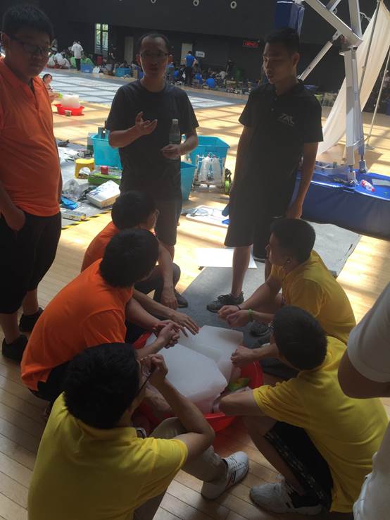 参赛师生一边“烤冰”降温,一边商讨比赛策略