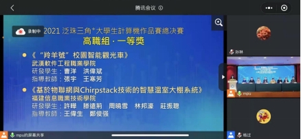 (通讯员 王寒芳、梁彬)3月26日-27日,全国高等学校计算机教育研究会组织的“2021泛珠三角+大学生计算机作品赛”总决赛于澳门理工大学线上举行。在信息学院王寒芳、张宇老师的指导下,软件1902班曹洋、洪伟斌组成的参赛团队,凭借《“羚羊号”校园智能观光车》项目勇夺一等奖,实现湖北省高职院校在该项赛事上的突破。