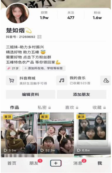 同时,团队选择抖音平台打造大学生助力乡村振兴IP账号,“以助力乡村振兴”为主题,发布短视频累积获得点赞 1.9 万,粉丝增长至 1.6 万。