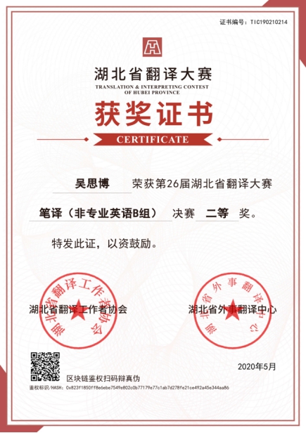 湖北省翻译大赛由湖北省翻译工作者协会联合湖北省外事翻译中心举办,是湖北省专业、权威的年度翻译赛事。大赛面向湖北省全体英语学习者和爱好者,包括知名本科高校学生在内的众多参赛者同台竞技,共同展现外语翻译才能。