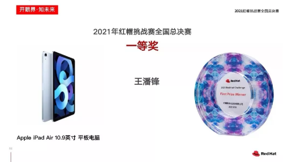 红帽挑战赛始于2017年,分为初赛,省赛,全国总决赛和国际赛。红帽是世界领先的开源解决方案供应商,依托社区驱动的方式来提供可靠和高性能的云计算、虚拟化、存储、Linux 和中间件技术。2021年,开源在中国被列入“十四五”规划,中国信息通信研究院最新发布《开源生态白皮书》指出,开源已经成为软件业的主流,全球97%的软件开发者和99%的企业使用开源软件。