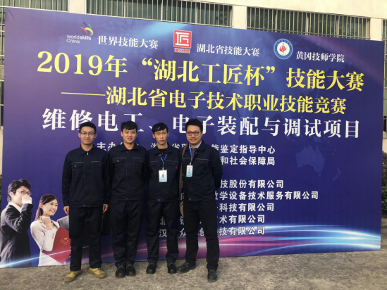 11月19日,2019年“湖北工匠杯”技能大赛——湖北省电子技术职业技能竞赛在黄冈技师学院闭幕,电子工程学院教师陈元凯以第一名的成绩获得维修电工赛项职工组一等奖,机电17级学生吴国健获得维修电工赛项学生组二等奖,刘张圆、胡光华获得同赛项三等奖。