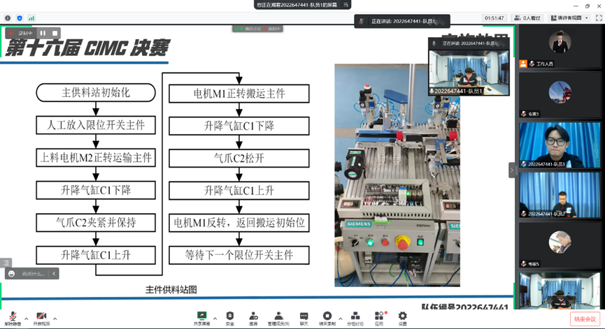 “西门子杯”中国智能制造挑战赛是中国智能制造领域规模最大、规格最高的国家A级竞赛,离散行业自动化方向(工程实践)赛项共有160个学校291支队伍报名参加。该赛项旨在培养参赛者综合运用自动化、机电一体化、工业网络通讯、工业边缘等相关专业知识,解决复杂工程问题的能力。参赛赛题不仅考查了参赛选手的PLC编程、人机界面HMI画面制作、工业物联网、RFID、机器视觉、IFAE虚拟调试与MES系统等等理论知识与技术知识,同时还考查了参赛选手的机械设备实际装配、电气设备实际安装与接线、软硬件PLC、HMI、PC Station、IFAE和MES虚实联调、自动化、网络化、信息化和智能化等实际工程装调操作能力和方案撰写能力。