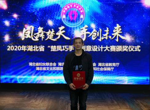 大赛由湖北省妇女联合会、湖北省发展和改革委员会、湖北省教育厅、湖北省文化和旅游厅、湖北省人力资源和社会保障厅联合主办。5月21日正式启动,全省2000余件作品参赛,经过专家评审团严格筛选、初审、复赛和决赛,最终确定一等奖3名,二等奖6名,三等奖7名。我校艺术与传媒学院李建强教授的漆艺作品《韵-星座发卡》得到专家评委的一致肯定,以总分第五的成绩荣获二等奖。