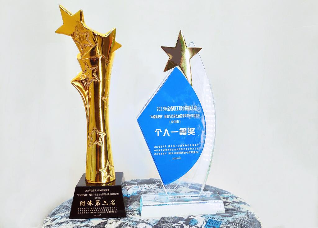 在随后举行的湖北省第一届数字工匠技能大赛网络与信息安全管理员赛项中,计算机学院任琦、王彩梅老师指导的刘景源、李健、王舒畅同学与来自华科、武大等多所高校以及全省企事业单位共45只队伍同台竞技,获得学生组个人赛第一名、第八名和第十名,学生组团队赛第三名。