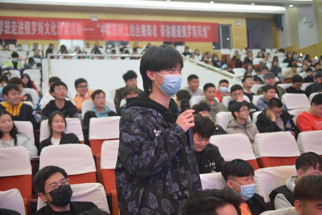 讲座现场,两位嘉宾邀请同学上台进行俄语会话训练,鼓励同学们学好俄语,成为俄语好、专业强、全面发展的俄语人才。活动现场气氛热烈,同学们踊跃参与,积极交流。