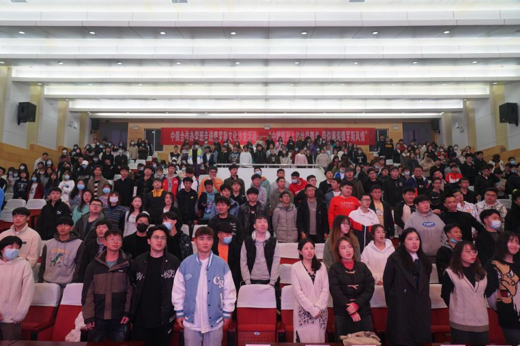 3月16日晚,学术楼1号厅,国际学院、人文学院联合举办中俄合作办学班走进俄罗斯文化沙龙——“中欧班列上的丝路舞者 带你邂逅俄罗斯风情”。中俄合作办学班180余名师生及商学院200名学子参加。