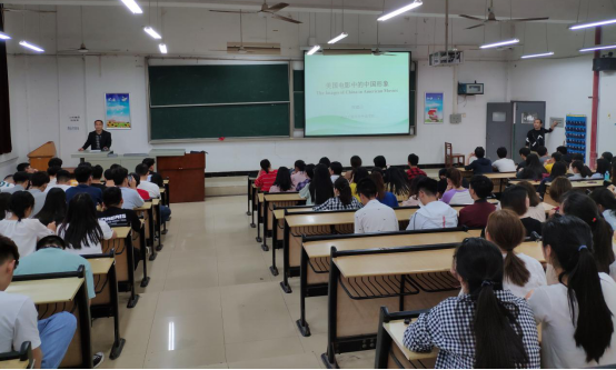 (通讯员 夏文婷)4月25日晚,带着对电影文化的好奇,近300名学子走进1330教室,聆听了武汉工程大学外语学院程建山副教授带来的“美国电影中的中国形象”精彩讲座。