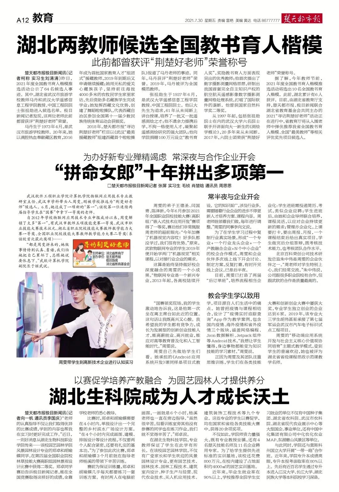武汉软件工程职业学院计算机学院物联网应用技术专业教研室主任、武汉市学科带头人周雯刚刚被学校推选为“荆楚好老师”候选人。6月,她达成了一项新的“第一”:该校第一位连续两届指导学生在“国赛”中拿下一等奖的老师。