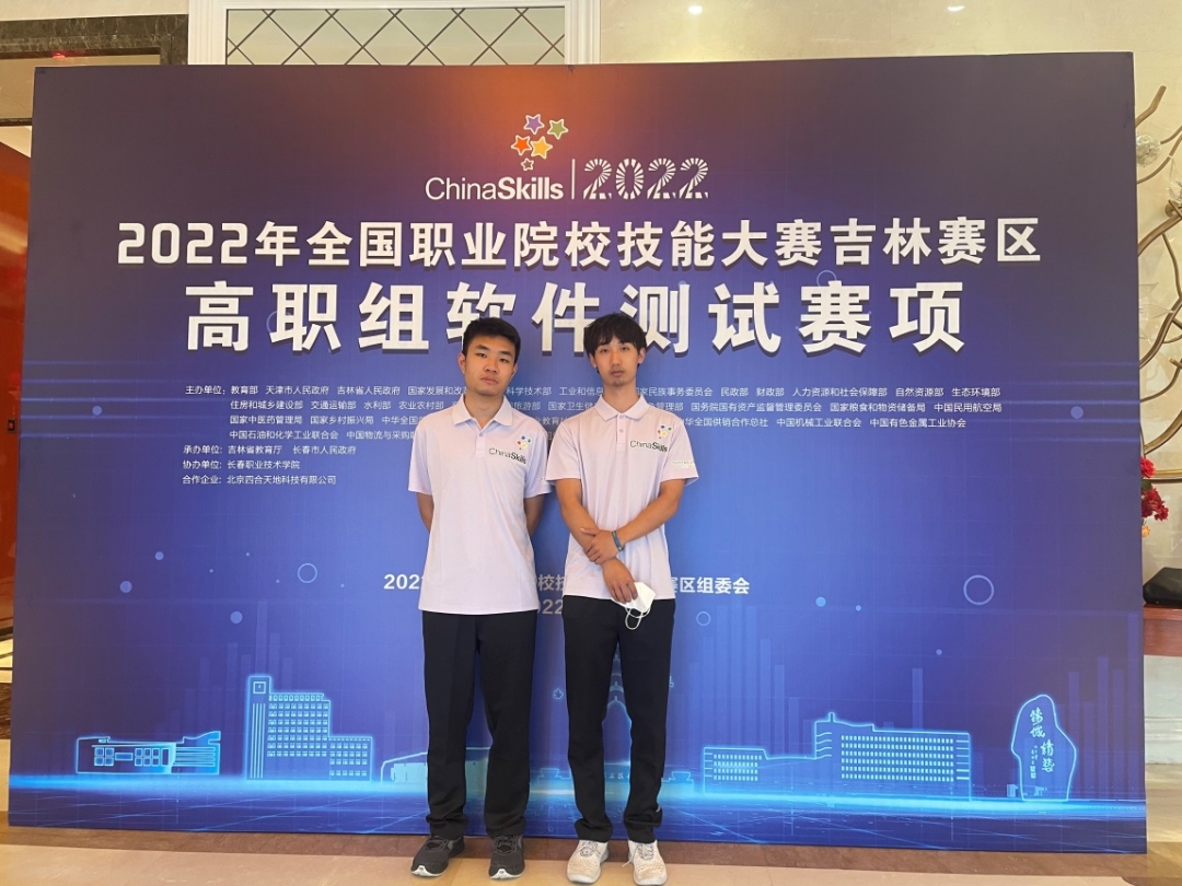 7月25日,2022年全国职业院校技能大赛(高职组)“软件测试”赛项在长春职业技术学院举行。来自全国的63支代表队,126名选手,历时8小时,围绕软件测试应用领域的主流技术及应用进行比拼。由信息学院张宇、刘洁老师指导,王赞、刘铖炜同学组成的团队在竞赛场上,不畏强敌劲旅、沉着冷静应对,斩获三等奖。