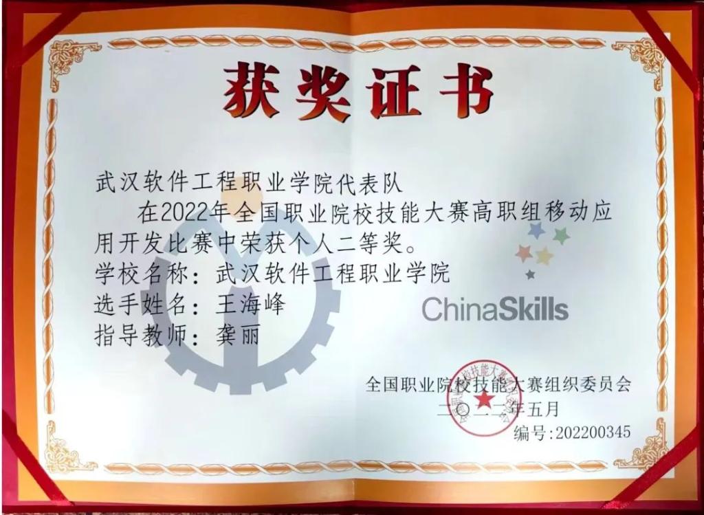 8月6日,2022年全国职业院校技能大赛移动应用开发赛项(高职组)经过3天激烈角逐在黑龙江佳木斯市圆满收官,共吸引来自全国30个省(区、市)的59支队伍参赛。大赛设有需求分析、初步设计、功能模块开发、测试与交付四个模块,重点考查参赛选手在移动应用开发实际工程项目中的各项能力。计算机学院王海峰在教师龚丽的指导下,获得该赛项二等奖。
