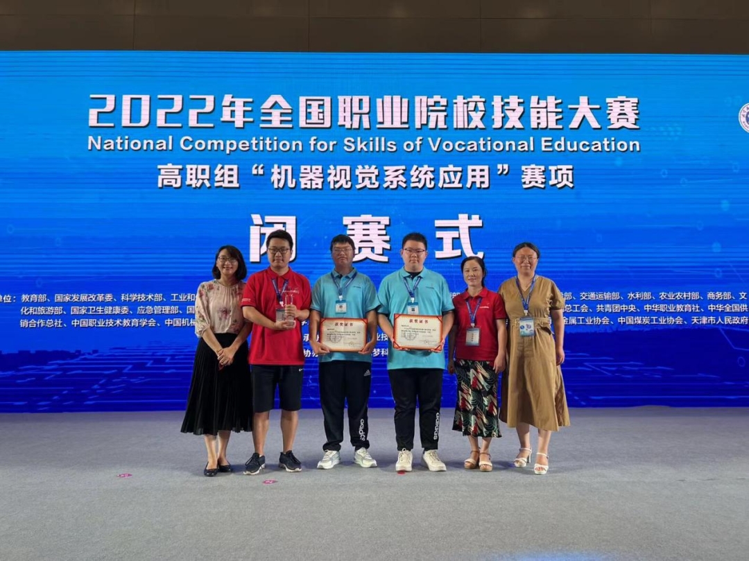 8月4日至7日,2022年全国职业院校技能大赛(高职组)“机器视觉系统应用”赛项在中国光谷科技会展中心举行,来自全国29个省、自治区、直辖市的56支代表队展开角逐。电子工程学院徐维正、梁浩组成的代表队在比赛中顽强拼搏、高效协作,以第一名的成绩获得一等奖,指导老师陈元凯、谷玉玲获得“优秀指导教师”称号,继2021年国赛勇夺冠军,我校学子在该赛项蝉联第一。