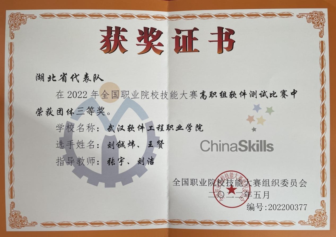 “软件测试”赛项三等奖