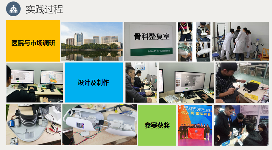 “Re-build家用康复器械开发与服务”项目自2018年年底发起,积累了“设计者联盟”团队多位指导老师和团队成员的实践成果。项目工作从17级学生传给18级学生,再由19级学生接棒参赛,充分体现通力协作、互助传承的团队精神。受疫情影响,今年的“挑战杯”省赛一开学即开赛。而“设计者联盟”团队从3月份起便着手备赛,在暑期更是两天召开一次视频会议密集推进。项目负责人、模具1902班的童磊介绍:“尽管不在一起,但我们的目标是一致的,每个人都在线下做好自己的分工内容,再通过线上沟通、传递,将项目整合起来。我们勇敢地尝试并适应在线工作方式,提前为省赛做好了准备。现在,想到即将要代表学校出征国赛,团队的小伙伴们都非常激动,心里充满了使命感和荣耀感。”