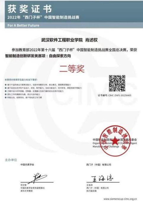 此外,在本届“西门子杯”“自由探索赛项”中,电子工程学院陈元凯、李大明老师指导学生肖述权、刘琪、王馨怡获全国总决赛二等奖。“自由探索赛项”是全部8个赛项中唯一一个不分本科组和高职组的赛项。