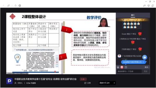 3月19日至20日,中国职业技术教育学会第十五届“说专业•说课程•说专业群”研讨会召开,我校商学院教师王宁的《供应链管理》课程入选说课程示范展示名单,并于今天下午进行线上宣讲。本次研讨会参会人数达20000人,观看次数超80000次。