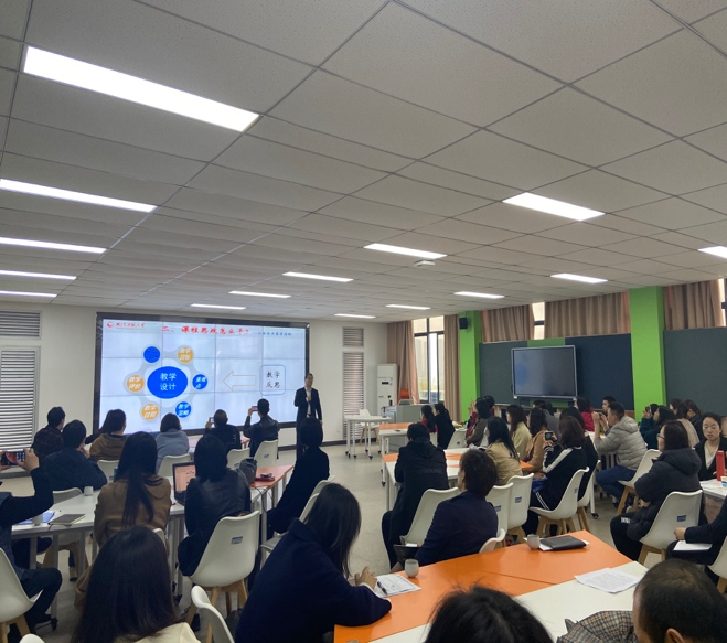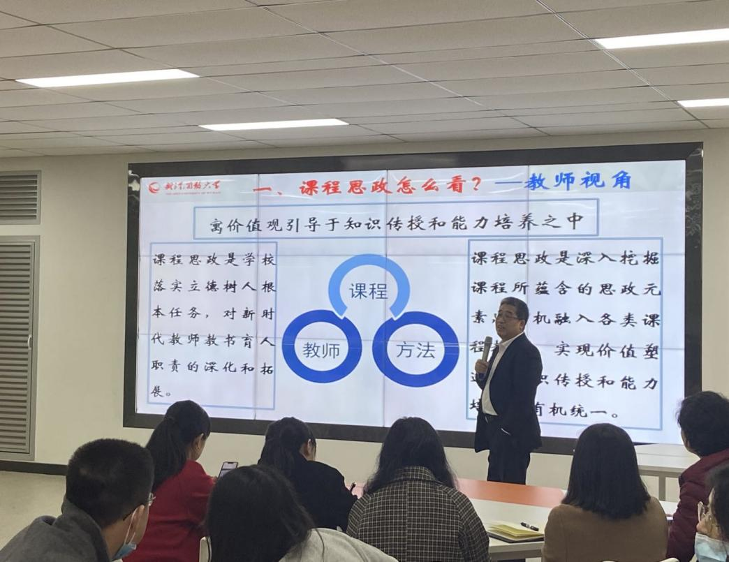 万国邦副校长紧紧围绕立德树人根本任务,结合《高等学校课程思政建设指导纲要》等文件精神,分别从“怎么看、怎么干,怎么研”三个方面对如何开展课程思政进行阐述。首先,他以教师视角指出课程思政的本质,即实现价值塑造、知识传授和能力培养的有机统一。紧接着,他从人才培养目标的实现、人才培养质量的提高、课程教学的设计、教学过程的实施四个维度,进一步指明课程思政建设过程中应该遵循的原则以及需要避免的误区。万国邦教授关于“课程思政”价值意蕴的解读,为与会教师正确理解“课程思政”科学内涵,牢牢掌握“课程思政”鲜明特点提供了明确的方向与思路。
