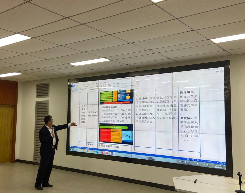 随后,万国邦副校长结合自身教学实践,对课程思政的实施路径做了示范讲解。他以“公共关系学”教学设计为样例,从教学目标、教学策略、教学实施过程、教学评价和教学反思等方面全方位再现如何把思政有机融合在课程中。他强调,教学反思是各个教学环节的重中之重,其他教学环节都要紧紧围绕教学反思展开,这也是育人目标实现的必经之路。