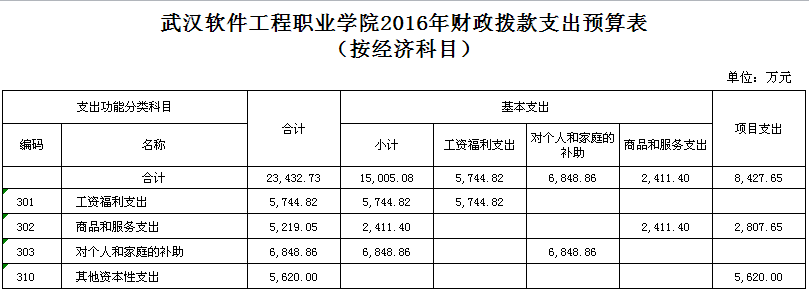 武汉软件工程职业学院2016年财政拨款支出预算表(按经济科目)