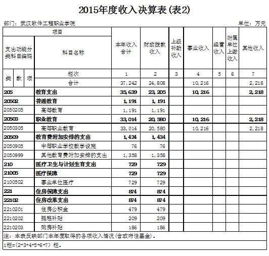 第三部分 武汉软件工程职业学院(武汉市广播电视大学)2015年度部门决算表