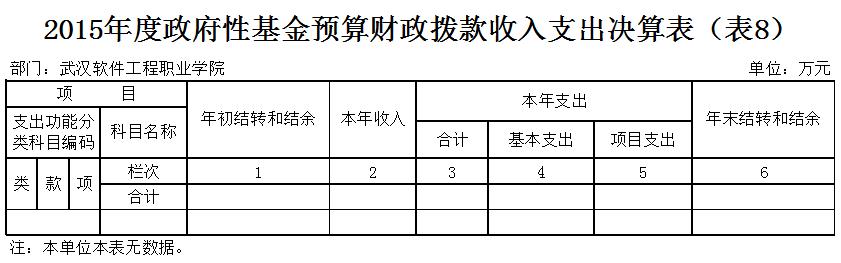 武汉软件工程职业学院(武汉市广播电视大学)2015年无政府性基金预算财政拨款。