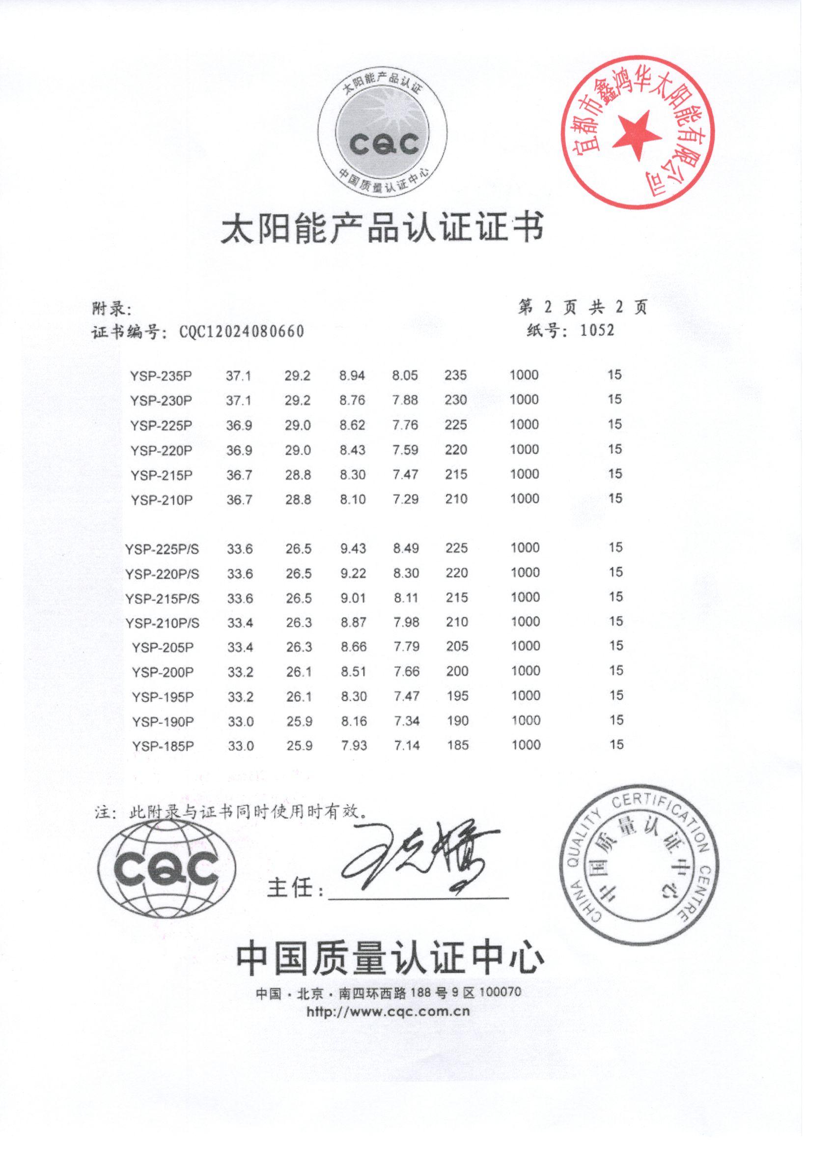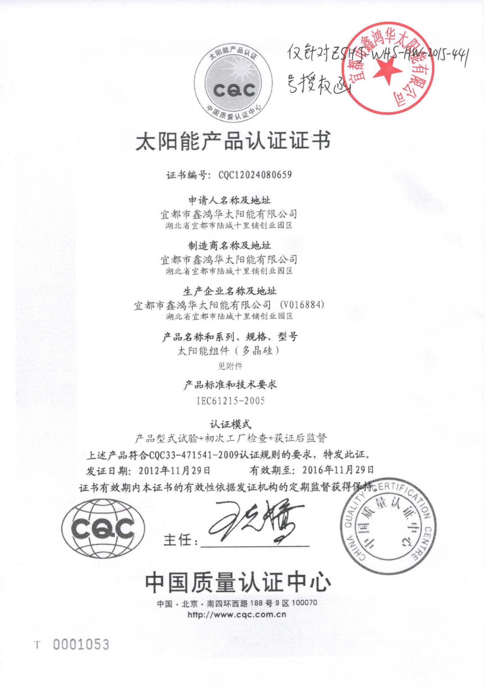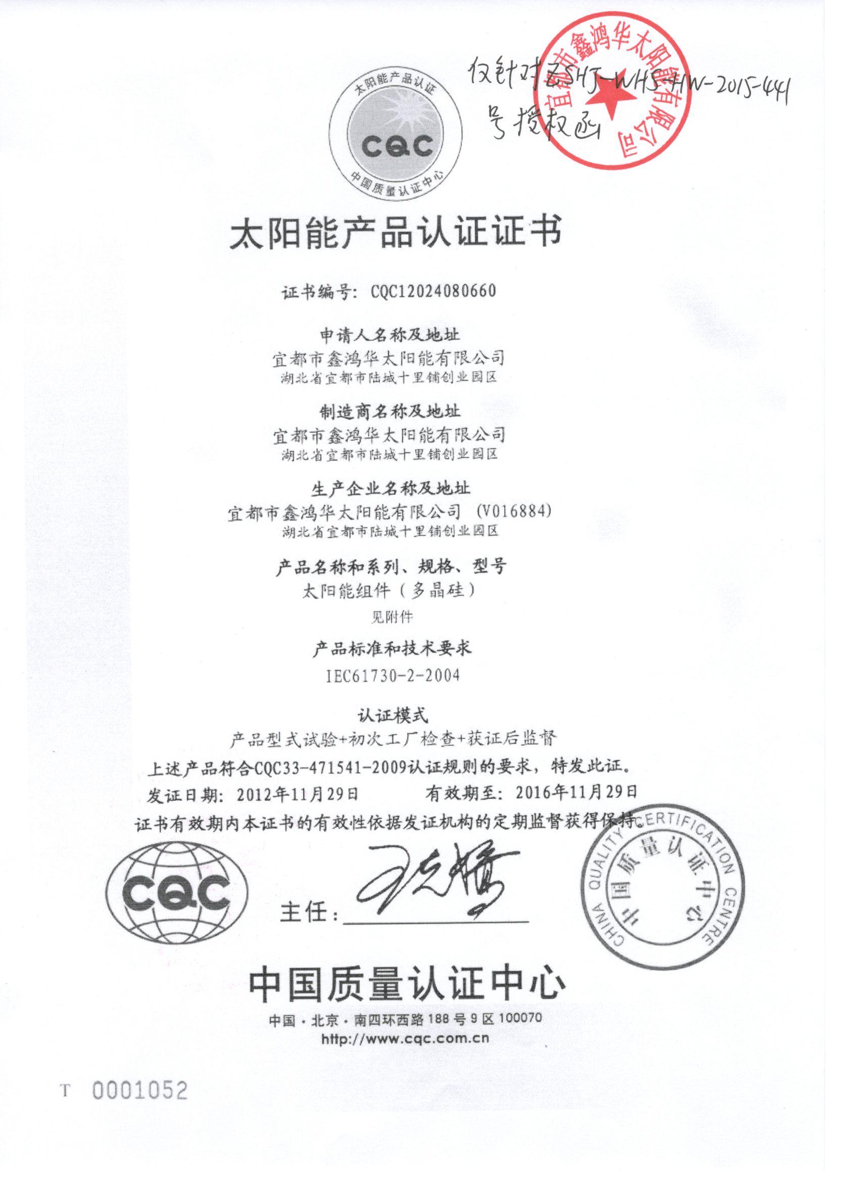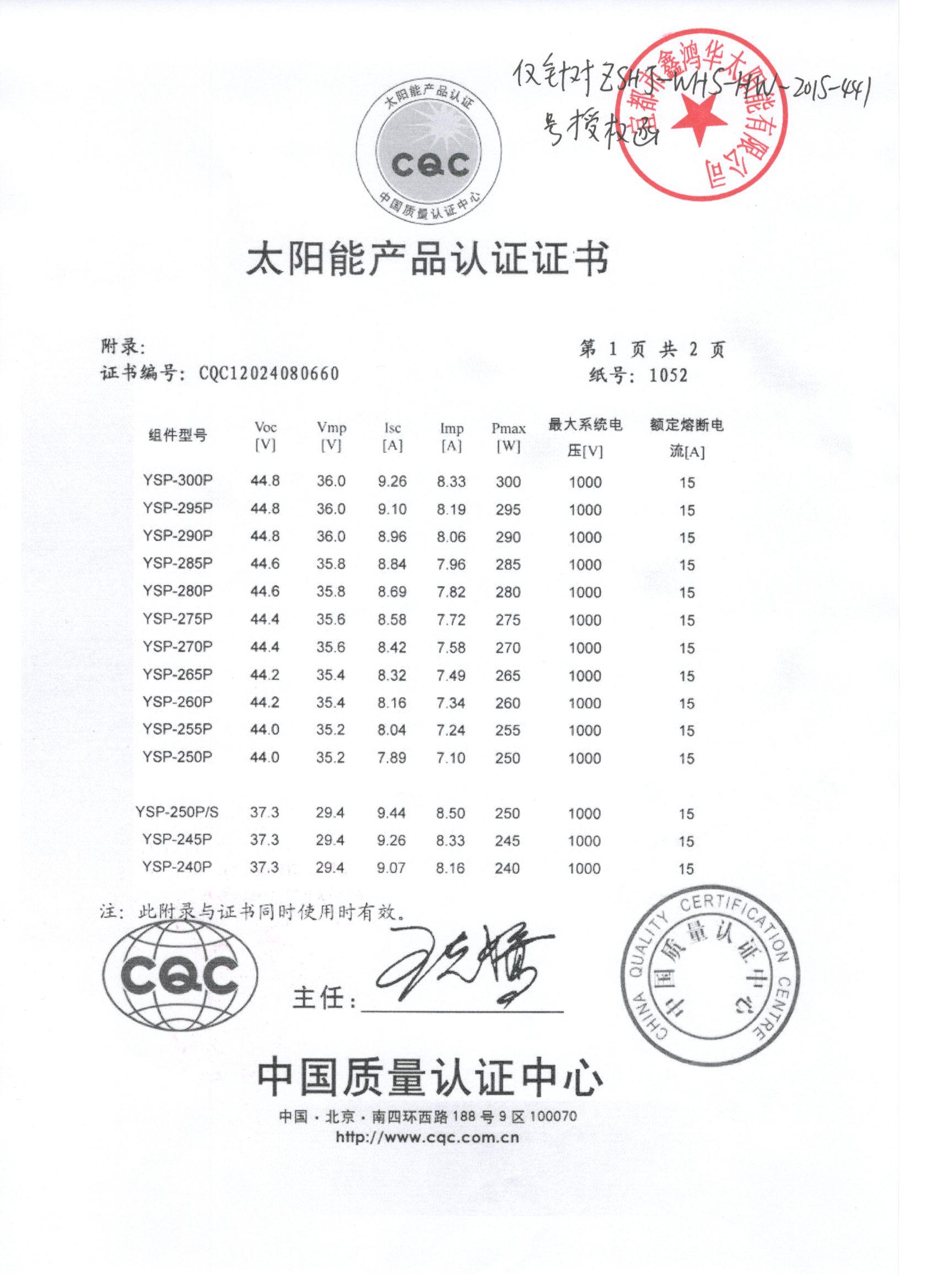 分布式光伏发电项目太阳能电池板验收合格证书