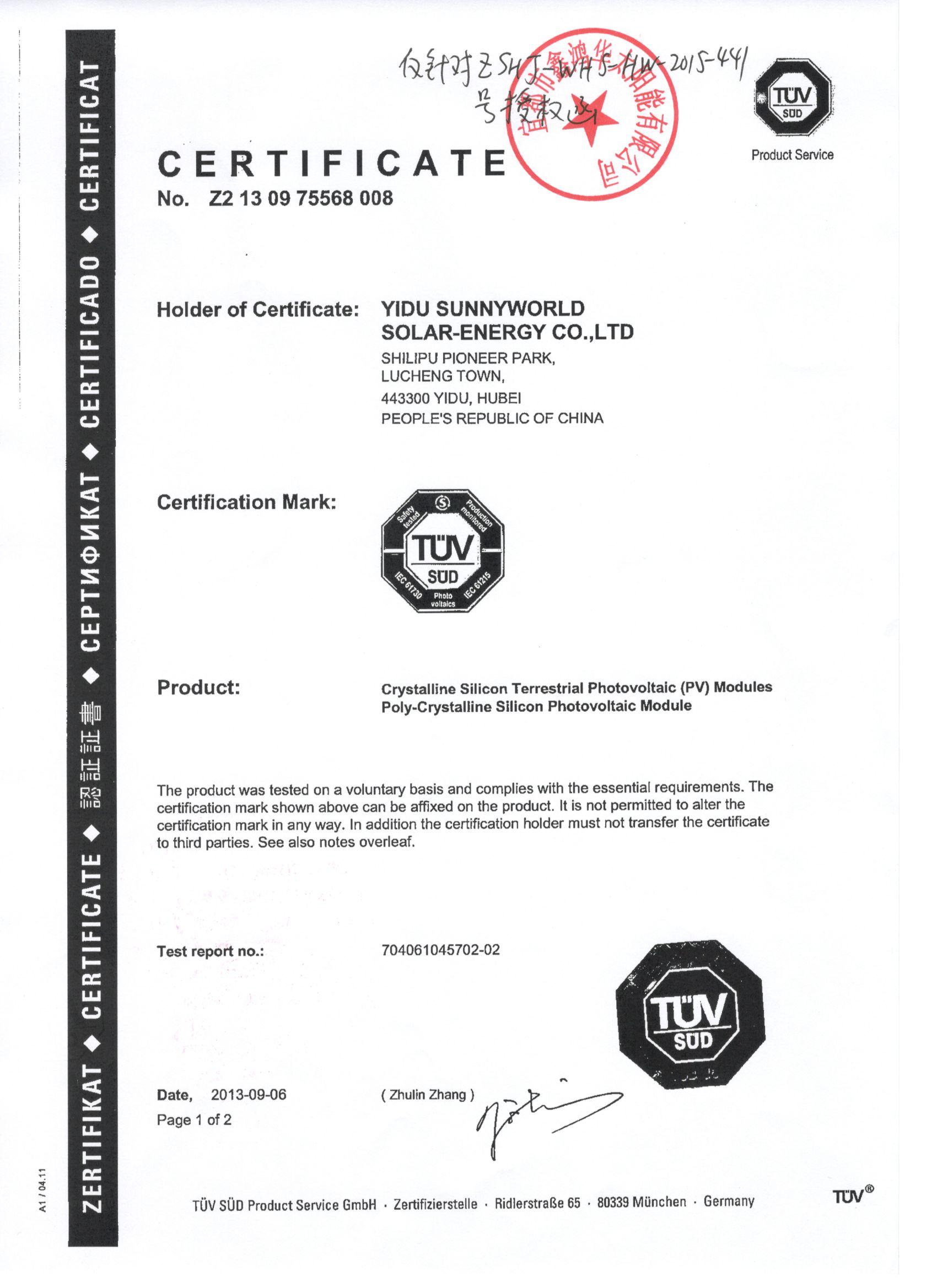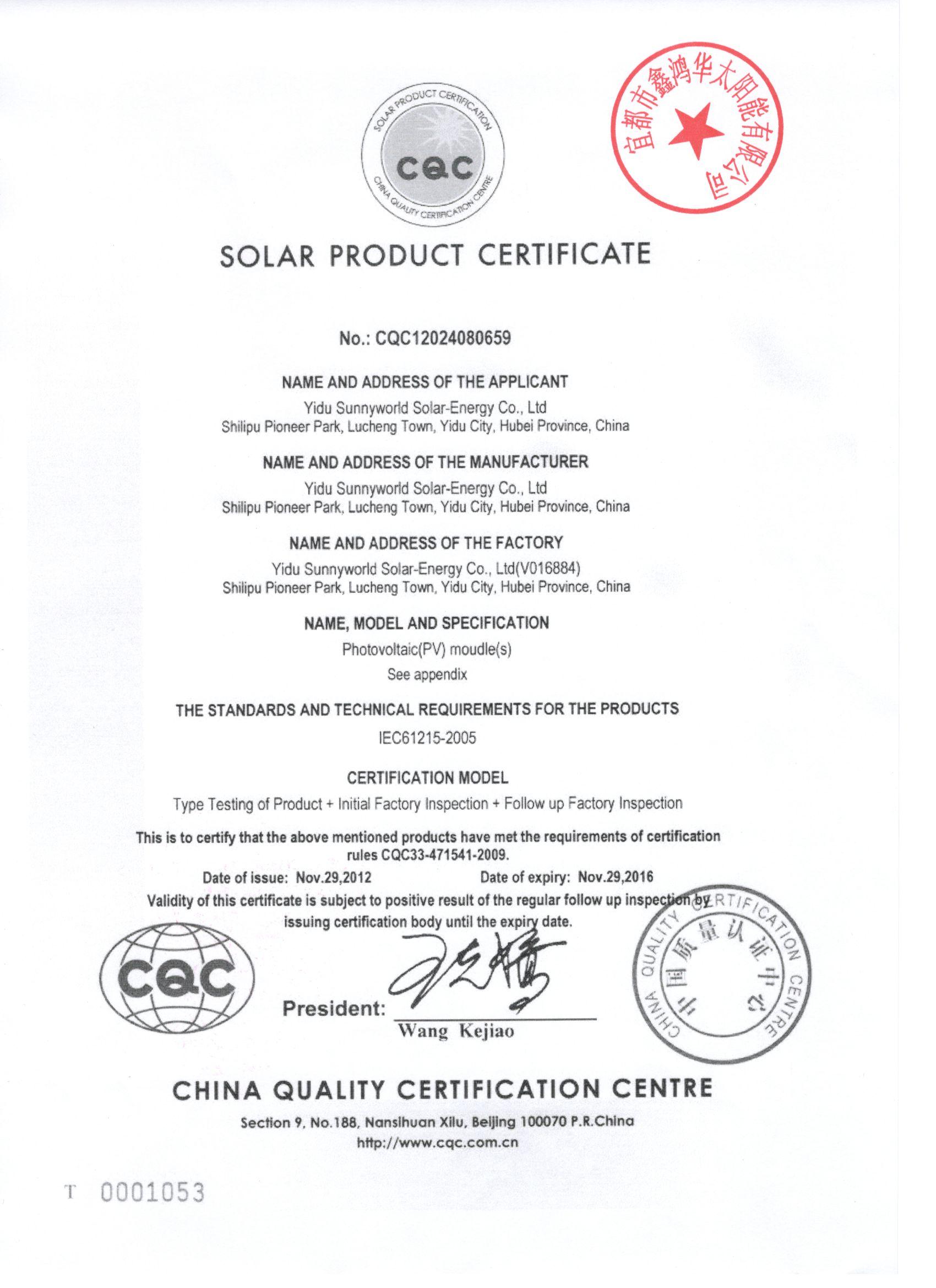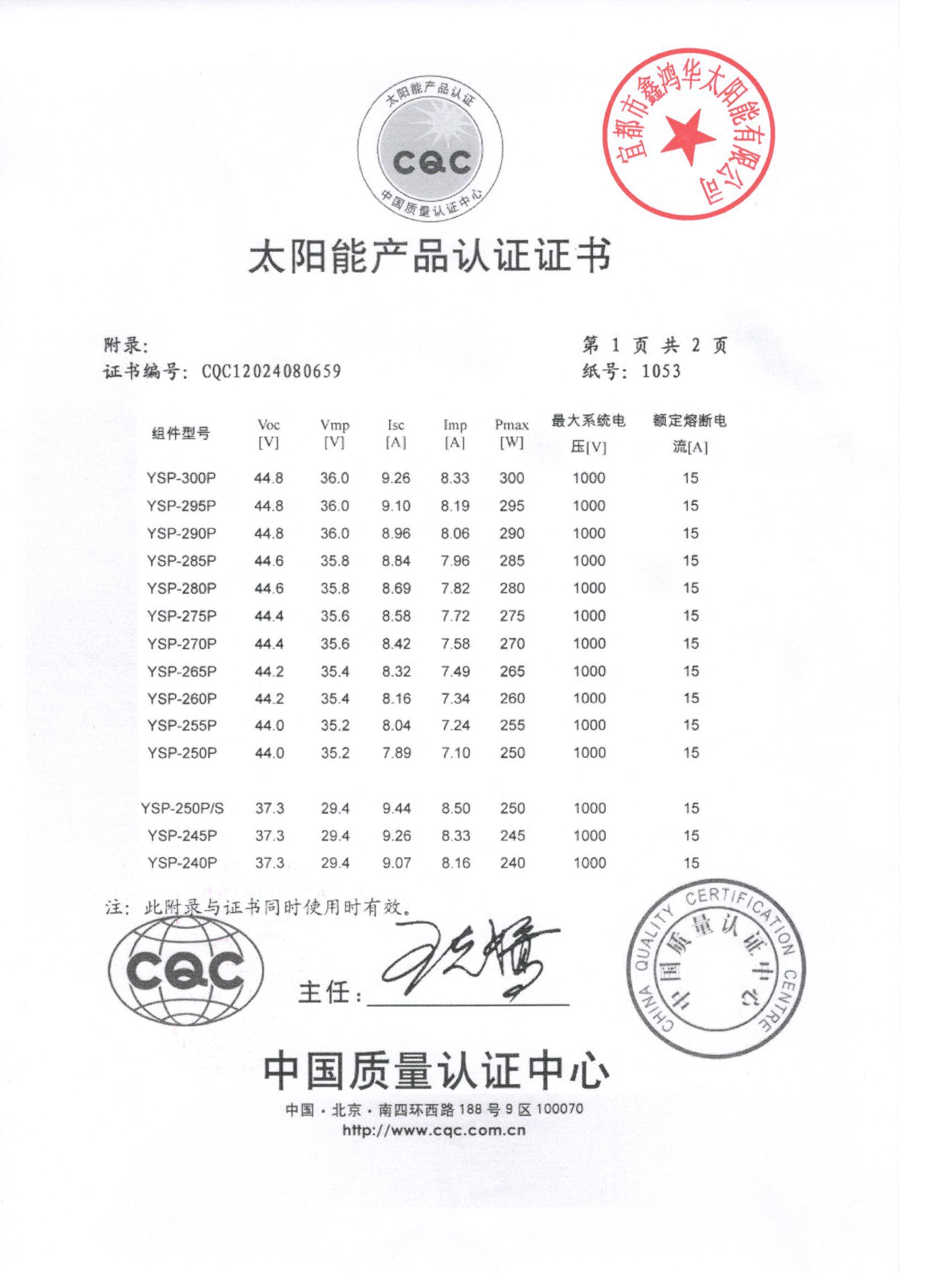 分布式光伏发电项目太阳能电池板验收合格证书
