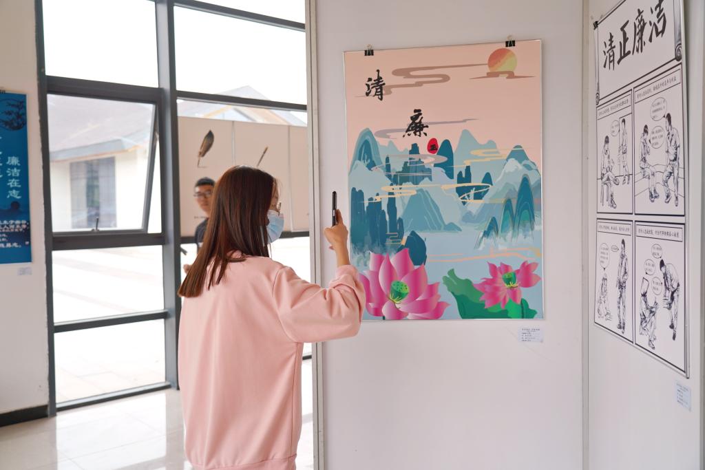 本次展出是学校党风廉政建设宣传教育月的重要活动之一。作品形式多样,内容丰富,意境深远,充分体现廉政文化与艺术形式的高度结合,更是学校崇廉、奉廉、赞廉精神风貌的体现。