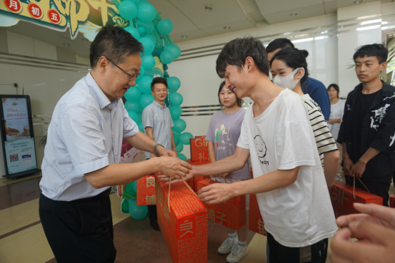 刘前信校长代表学校向同学们送去节日的问候和端午节礼,和同学们讨论学习生活、专升本、人生规划等问题,认真记下同学们关心的专业竞赛、专升本、就业等问题,并一一进行了解答。他表示,学校坚持以学生为中心,一直努力为同学们的学习成长提供更好的条件、更高的平台。同学们的需求,学校将组织相关部门迅速研究落实。他鼓励大家一定要学好经典,练好身体,交好朋友,在学校把基础打扎实,未来获得更好的成长。
