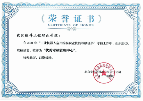 (通讯员 陈淑玲)2023年4月16日,机械行业数字化设计与增材制造职教集团2023年工作年会暨赛育达X证书试点工作总结会在安徽机电职业技术学院成功召开,会上对2022年工业机器人应用编程1+X试点工作进行了总结和表彰,我校荣获全国试点“优秀管理中心”,这是我校继2020年试点以来,连续三年获次荣誉。
