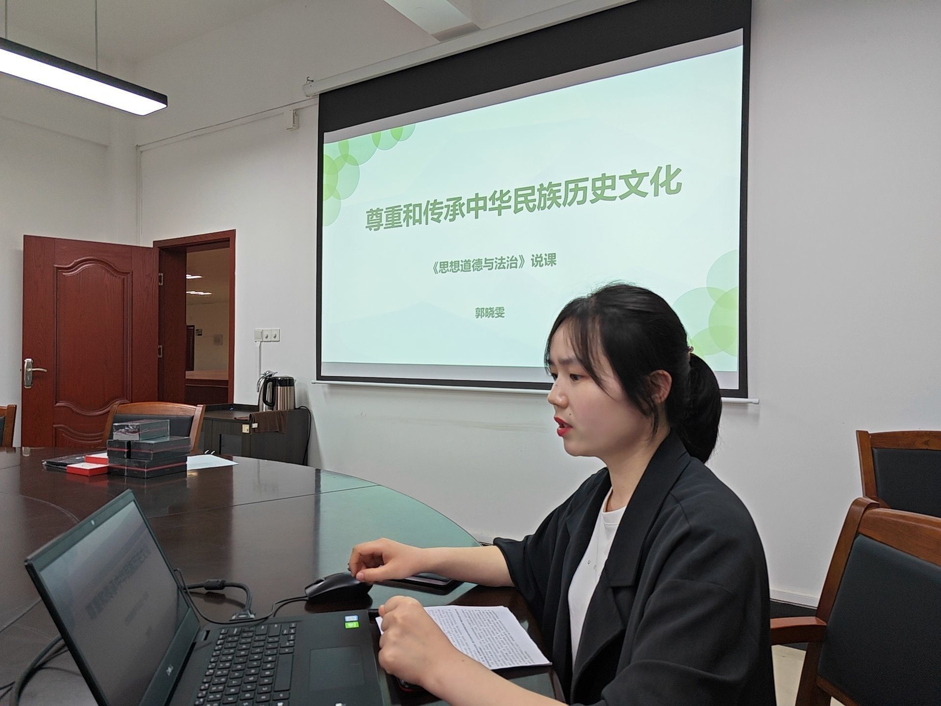 郭晓雯老师展示《思想道德与法治》课程中“尊重和传承中华民族历史文化”一课的教学设计,从学情出发整合教学内容,精心设计问题链、运用鲜活的案例开展启发式教学,整堂课用信息化技术赋能课程教学,让学生“动起来”,让课堂“活起来”,解决了学生的思想困惑。郭老师还谈到:思政课教师需在理论讲深、讲透上下大工夫。