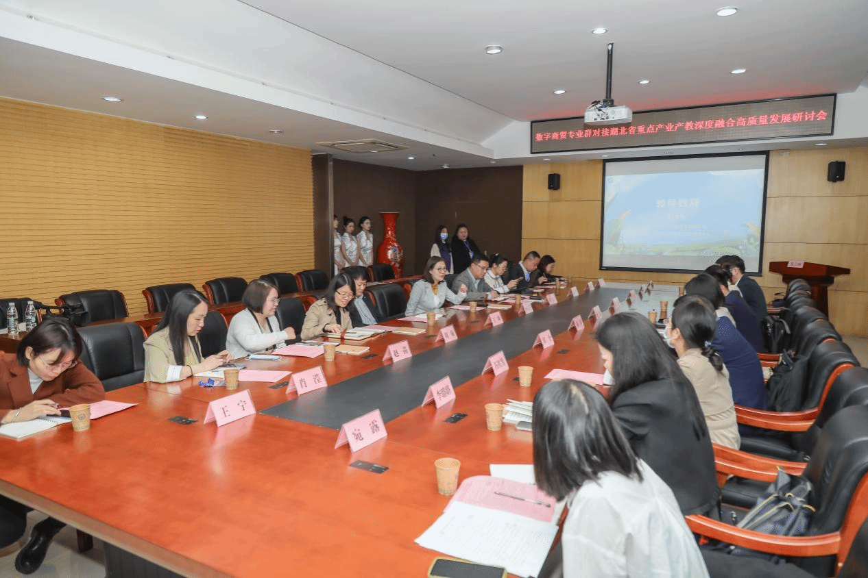 产教融合、校企合作是职业教育的基本办学模式,是办好职业教育的关键所在。为紧紧围绕学校办学定位,高质量服务湖北经济社会发展,4月7日下午,武汉软件工程职业学院商学院在校学术楼二楼会议室召开数字商贸专业群对接湖北省重点产业产教深度融合高质量发展研讨会。武汉软件工程职业学院(武汉开放大学)副校长、湖北跨境电商职业教育集团理事长孙美华出席研讨会并致辞。研讨会由商学院院长郭黎主持。