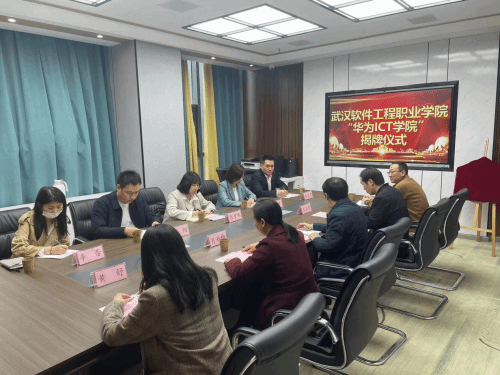 仪式结束后,华为、武汉软件工程职业学院、讯方技术领导进行校企合作交流座谈,会议达成三方共识,计划通过华为ICT学院项目,在计算机相关专业等领域,引入华为、讯方企业资源,在人才培养、课程建设、师资培训、实训室建设、认证培训、就业服务等方面展开深入合作,构建产教融合人才培养的又一重要阵地,进一步提升学校人才培养质量、促进“双师型”教师队伍建设,增强社会服务能力,提升毕业生就业质量,为学院高质量发展和人才培养提供强大动力。