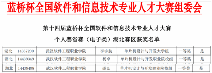 第十四届“蓝桥杯”个人赛省赛(电子类)一等奖选手