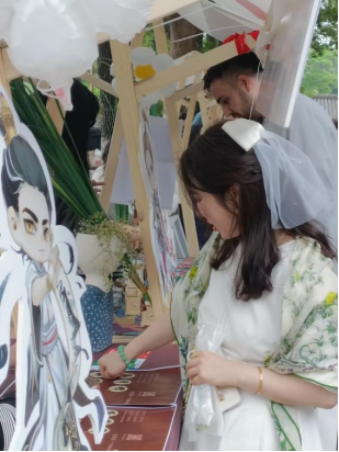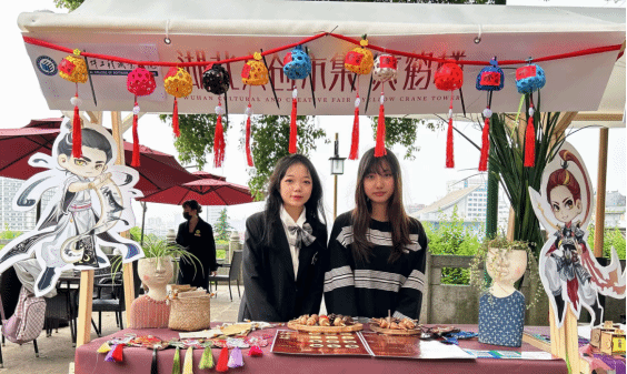 艺术与传媒数媒艺术、艺术设计、环艺师生开发的文创产品“口袋里的动画--手翻书”、“瞪--陀螺”、“动画盒子”、“中国建筑文创系列”、“国潮方言团扇”、“楚楚动人--汉秀首饰系列”等在集市展卖,通过前期与湖北省博物馆和中国建筑博物馆的合作我们的文创作品已拥有一定的市场认可度,本次3天的展卖活动共计售卖包括6种国潮题材的“口袋里的动画--手翻书”300余本所有库存全部售罄,其中最先售罄的为黄鹤楼与孙悟空、哪吒系列。“瞪--陀螺”系列灯彩造型陀螺100余个10个品类的陀螺在一天半的时间内销售一空,“动画盒子”功夫系列9个品类50件作品在展览第二天全部售罄,“国潮方言团扇”20把一出场就被秒杀。“中国建筑文创系列”钥匙扣、丝巾杯垫也成为爆品,拥有黄鹤楼元素的建筑全部售罄,武软学子也在展览中展现出了武汉人的热情,为中外游客介绍我们的作品思路和武汉小吃。作品也受到了兄弟院校、文创企业的认可纷纷购买订制,并表示要做进一步的交流与合作。