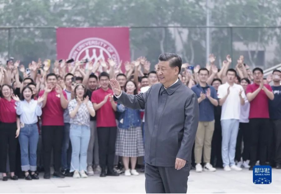2022年4月25日上午,中共中央总书记、国家主席、中央军委主席习近平来到中国人民大学考察调研。这是习近平向师生们挥手致意。新华社记者 谢环驰/摄
