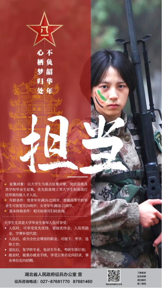 符合征集基本条件的应征女青年,在2021年6月26日至8月15日前,登录“全国征兵网”或关注“湖北征兵”微信公众号,填写报名信息。