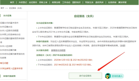 上半年应征报名:2020年12月10日至2021年2月20日18时;下半年应征报名:2021年6月26日至2021年8月15日18时。