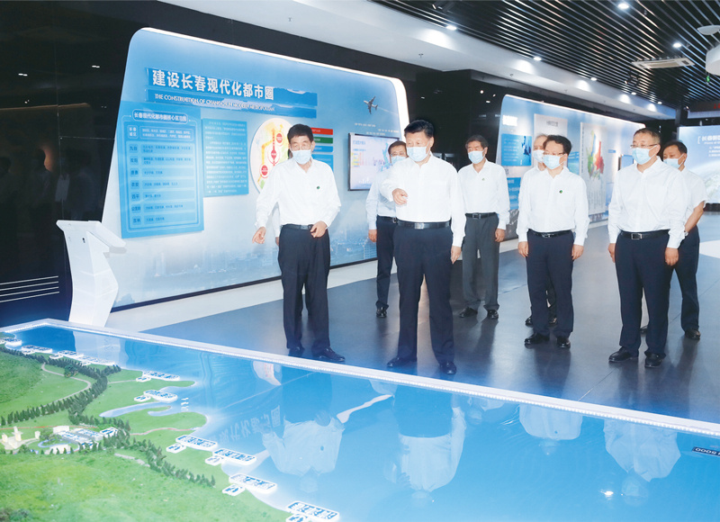 2020年7月22日至24日,中共中央总书记、国家主席、中央军委主席习近平在吉林省考察。这是7月23日下午,习近平考察长春新区规划展览馆,了解新区规划建设情况。 新华社记者 王晔/摄