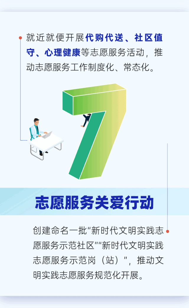 理想信念铸魂行动、市民素质提升行动、健康生活倡导行动、社区治理提质行动、城市环境美颜行动、窗口行业创优行动、志愿服务关爱行动、红色文化育人行动、立德树人推进行动、文明乡风涵育行动。