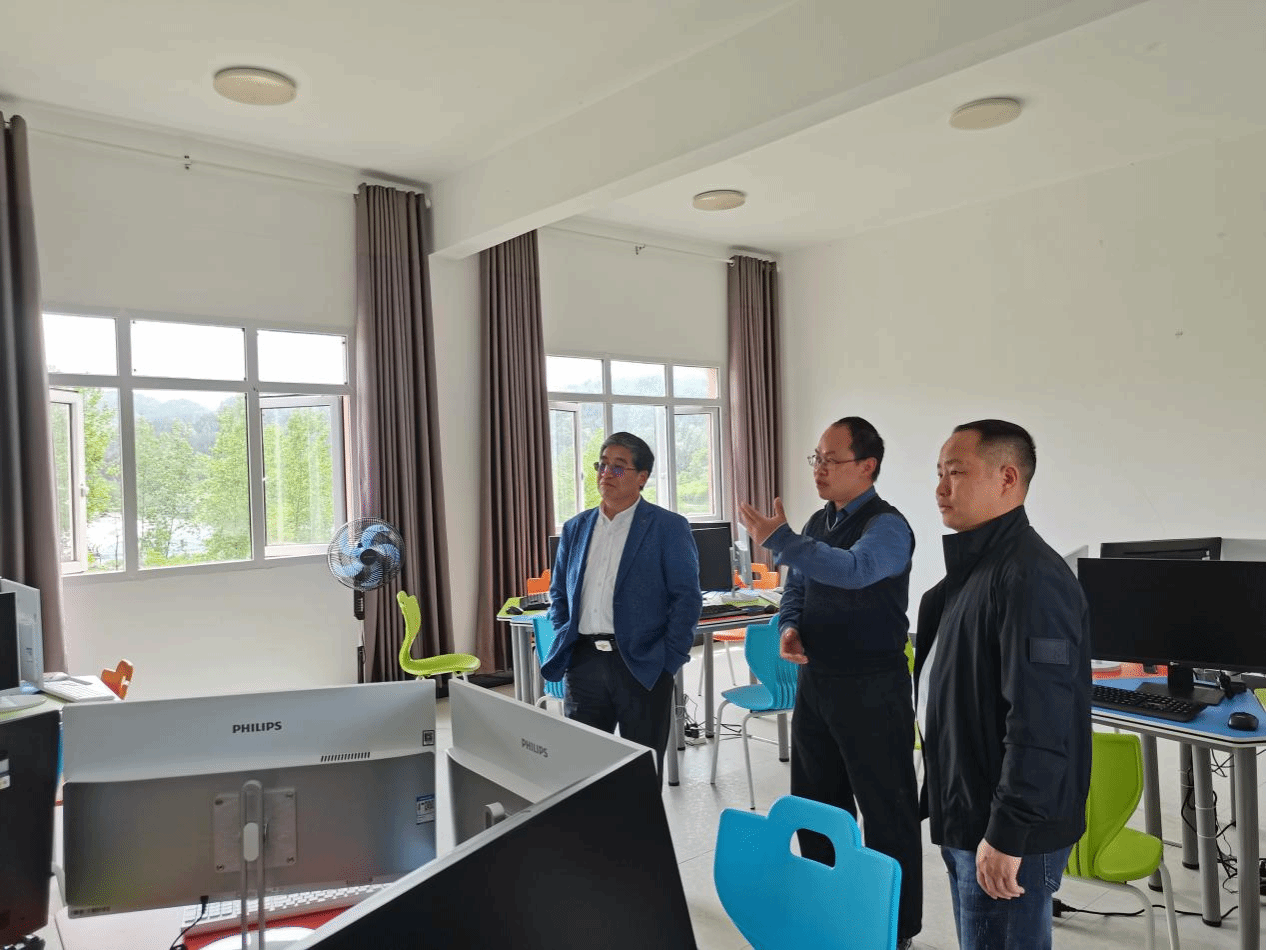 和百福司镇镇长汤超、廖家坝村党支部书记向发艮以及驻村工作队一起,调研组首先来到廖家坝村枫洞小学。在我校的支持下,廖家坝村枫洞小学成为全镇唯一教室有电扇、音乐教室有电钢琴、科学教室有全套实验器材的学校,我校对口援建的图书室(科学室)、心理咨询室等项目均已完工。驻村工作队还专门设立奖励机制,督促孩子们多读书、读好书。在智慧教室,万国邦副校长建议小学鼓励孩子们大胆使用计算机,提高信息素养和能力,学校将提供服务支持。