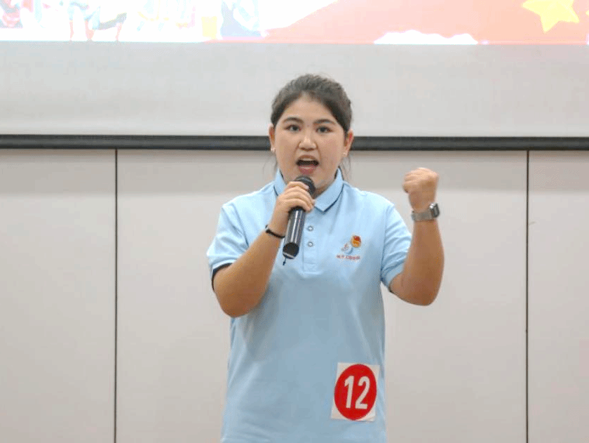 各参赛选手结合所学专业的行业发展、自身经历与对党、国家和社会发展的认识,用青年人的语言,饱含热情地阐述了自己对习近平新时代中国特色社会主义思想的认识和理解。阿丽亚·提廖哈孜同学讲述自己在武软学习的感受体会,表达了对党和国家的感激,阐述了对民族团结的深刻认识;代春兰同学讲述自己的兼职经历,号召青年人艰苦奋斗、锤炼自我,把青春绽放在技能比赛的赛场上,凝聚在去西部、去基层的梦想里,跋涉在乡村振兴的道路上,挥洒在暑期社会实践的汗水里。同学们用激情洋溢的青春誓言,感染着现场观众,掌声阵阵响起。