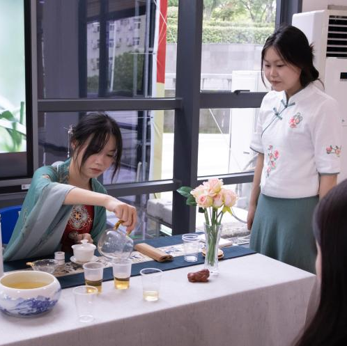 “茶之为饮,发乎神农氏”。文旅学院的志愿者们指导师生品味沏茶、赏茶、闻茶、饮茶、品茶的过程,普及中国茶文化相关知识。一位参与活动的同学表示,中国茶文化反映出中华民族悠久的文明和礼仪,这让自己倍感自豪。